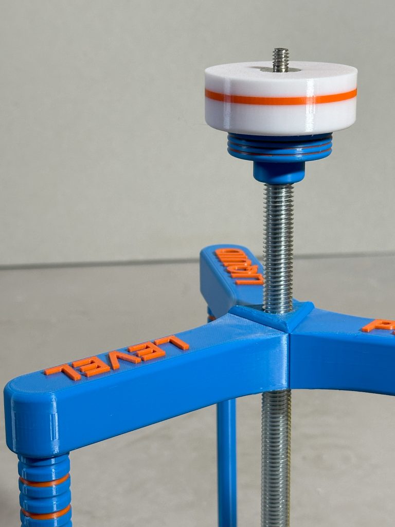 - Each base on the threaded screw has a color change to assist during the pouring of the levelling screed.